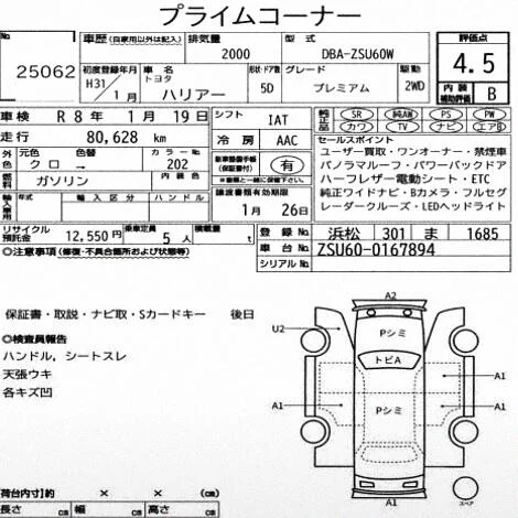 | Vehicle notes: G純正SD、カードキー 251215 保 取 ナビ取 Cキー 12/13 AA GRADE 4.5 / SUN ROOF / LED HEAD LIGHT / POWER BACK DOOR / HALF LEATHER SEAT / POWER SEAT / NAVI / BACK CAMERA / SMART KEY / PUSH START / STEERING SWITCH / CRUISE CONTROL. |