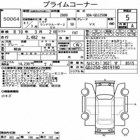 | Vehicle notes: スマートキー、キーコード 251118 保 取 Rキー 11/17 AA GRADE 5 / JBL SOUND SYSTEM / ROUND TYPE Bi-BEAM LED HEAD LIGHT / MODELISTA OVER FENDER / MODELISTA FRONT BUMPER GUARD / MODELISTA FRONT BUMPER GARNISH / MODELISTA SIGNATURE ILLUMINATION / 7-SEATER / SUN ROOF / LED HEAD LIGHT / POWER BACK DOOR / LEATHER SEAT / POWER SEAT / SEAT HEATER / SEAT VENTILATION / NAVI / 360 VIEW CAMERA / DIGITAL BACK MIRROR / SMART KEY / PUSH START / STEERING SWITCH / CRUISE CONTROL |