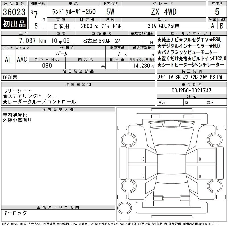 | Vehicle notes: Gスマートキー2 260109 AA GRADE 5 / ZX / 7-SEATER / SUN ROOF / LED HEAD LIGHT / POWER BACK DOOR / LEATHER SEAT / POWER SEAT / SEAT HEATER / NAVI / 360 VIEW CAMERA / DIGITAL BACK MIRROR / SMART KEY / PUSH START / STEERING SWITCH / CRUISE CONTROL |